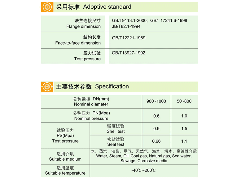 標準規范:1.法蘭連接尺寸:GB/T9113.1-2000 GB/T17241.6-1998 JB/T82.1-1994